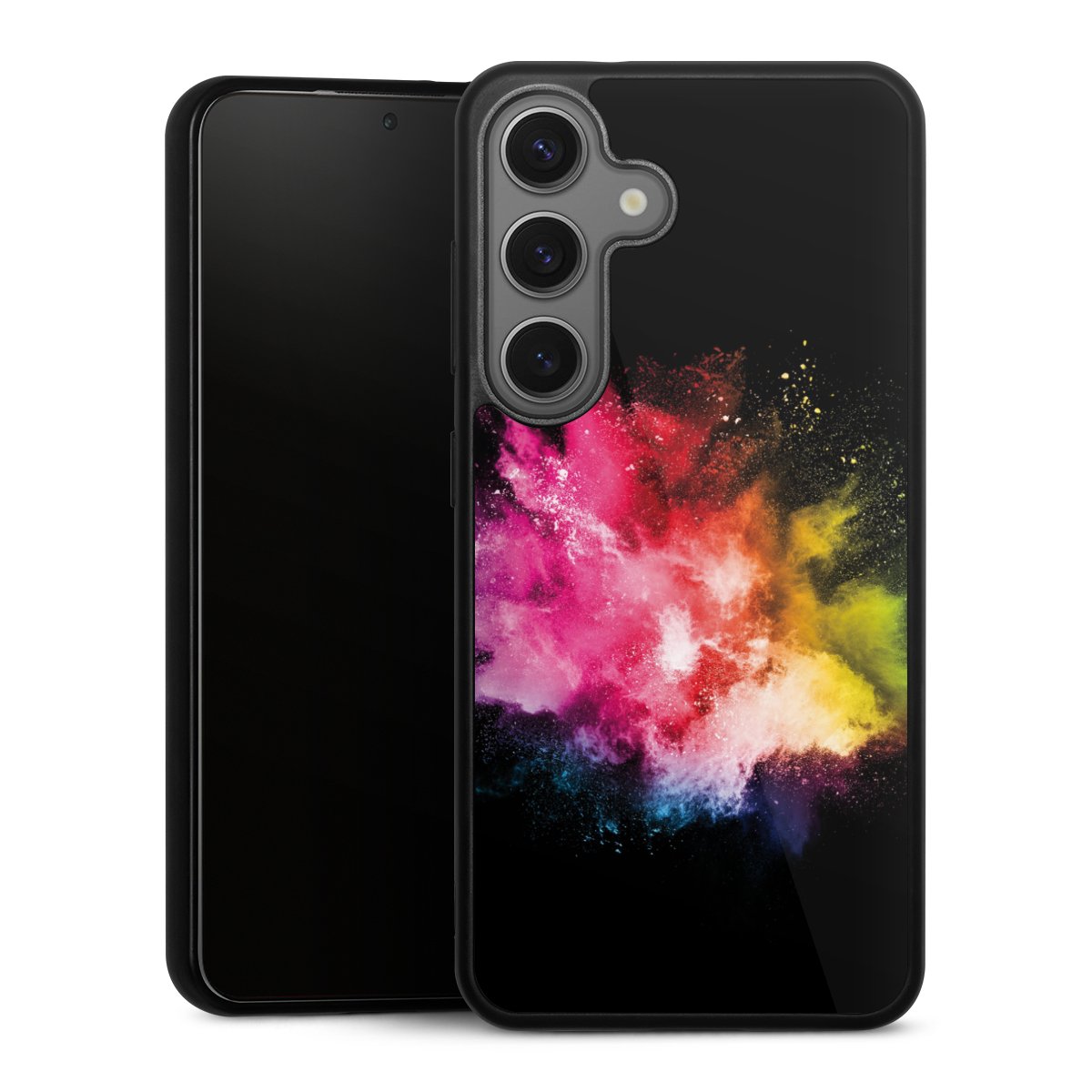 We print your design on the back of the glass inlay and then connect it firmly to the silicone case ,so that nothing sticks out and everything looks like it was cast from one piece. In addition, the sturdy glass element is protected from scratches by an additional coating and ensures a slight reflection on the shiny print image.