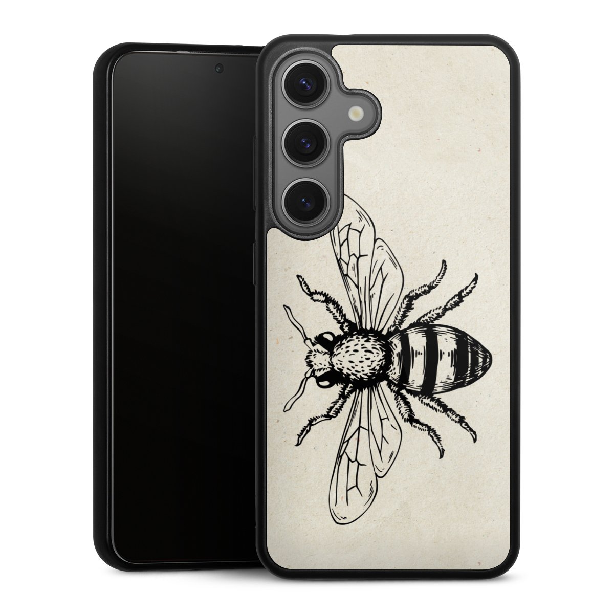 We print your design on the back of the glass inlay and then connect it firmly to the silicone case ,so that nothing sticks out and everything looks like it was cast from one piece. In addition, the sturdy glass element is protected from scratches by an additional coating and ensures a slight reflection on the shiny print image.