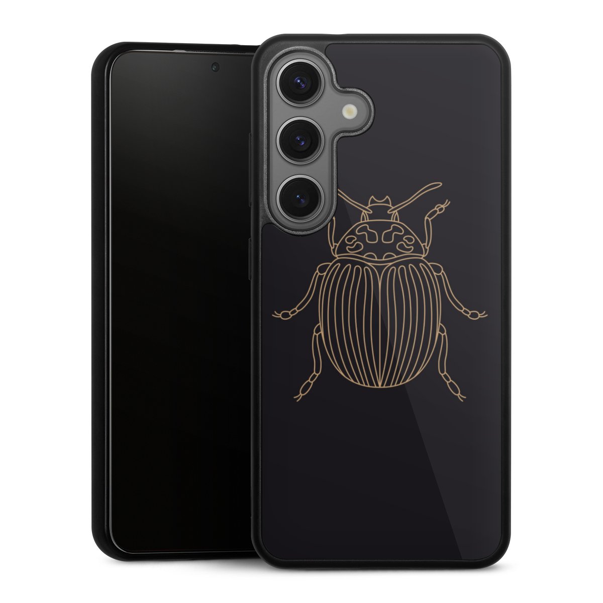 We print your design on the back of the glass inlay and then connect it firmly to the silicone case ,so that nothing sticks out and everything looks like it was cast from one piece. In addition, the sturdy glass element is protected from scratches by an additional coating and ensures a slight reflection on the shiny print image.