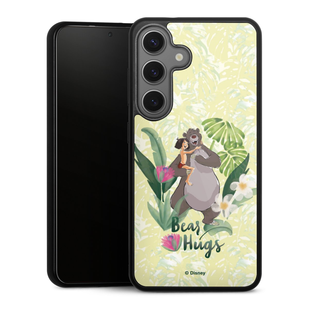 We print your design on the back of the glass inlay and then connect it firmly to the silicone case ,so that nothing sticks out and everything looks like it was cast from one piece. In addition, the sturdy glass element is protected from scratches by an additional coating and ensures a slight reflection on the shiny print image.