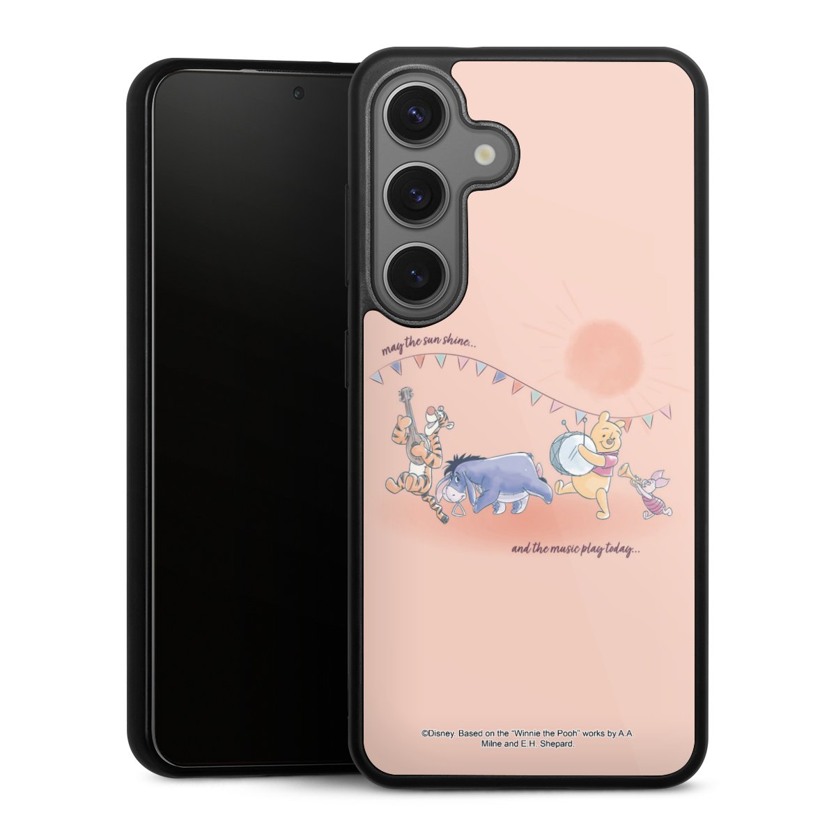 We print your design on the back of the glass inlay and then connect it firmly to the silicone case ,so that nothing sticks out and everything looks like it was cast from one piece. In addition, the sturdy glass element is protected from scratches by an additional coating and ensures a slight reflection on the shiny print image.
