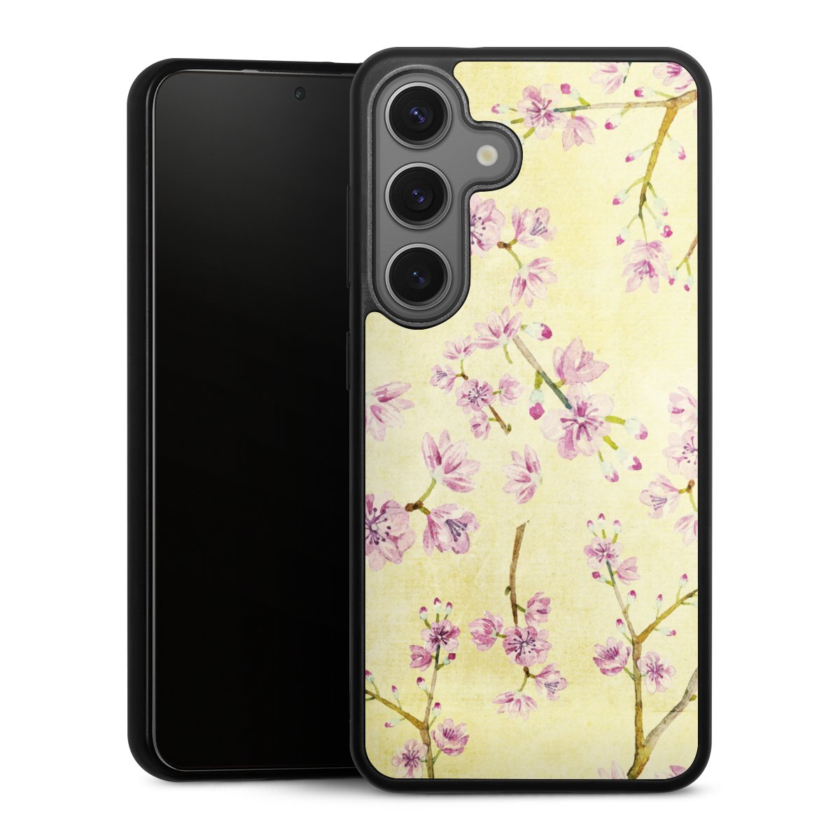 We print your design on the back of the glass inlay and then connect it firmly to the silicone case ,so that nothing sticks out and everything looks like it was cast from one piece. In addition, the sturdy glass element is protected from scratches by an additional coating and ensures a slight reflection on the shiny print image.