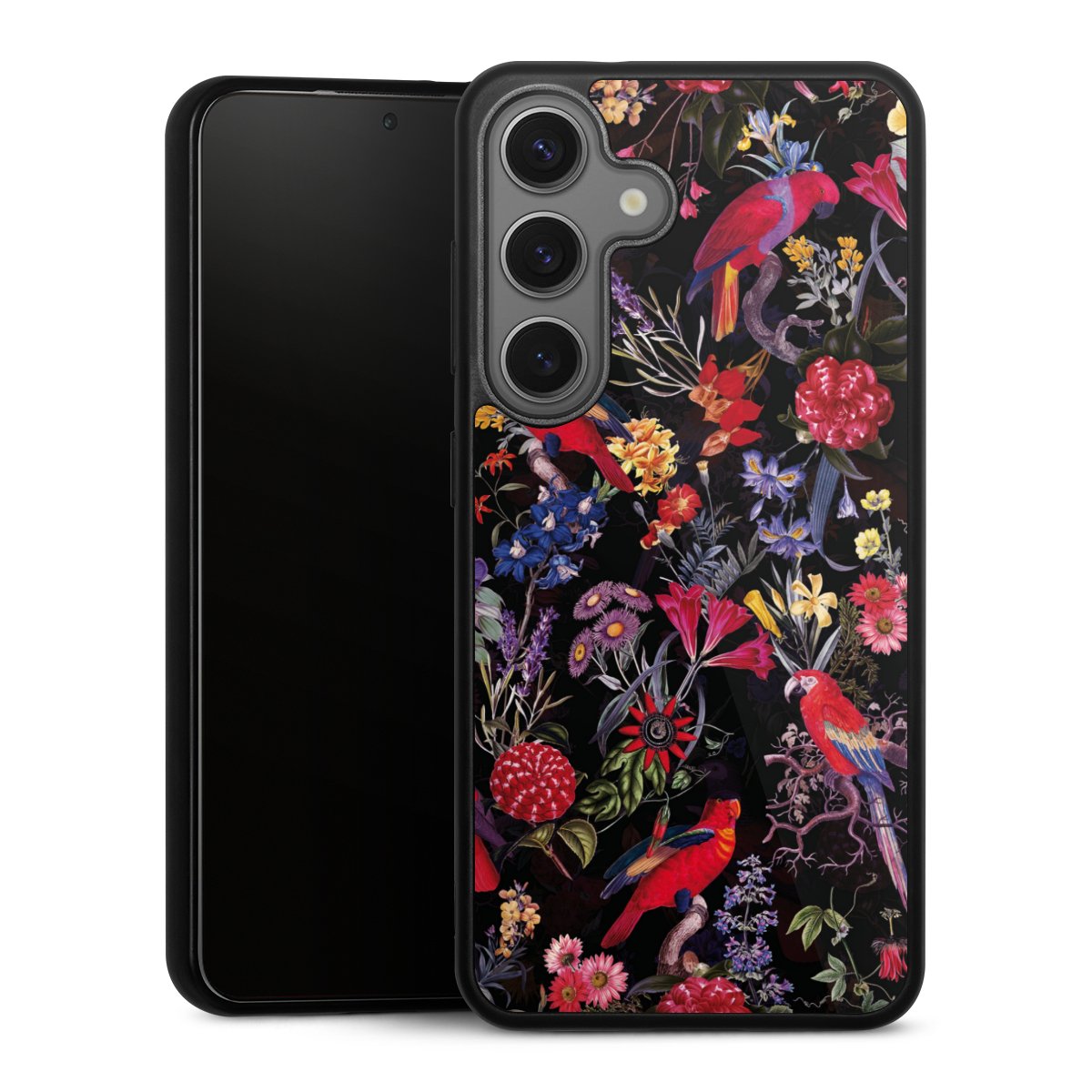 We print your design on the back of the glass inlay and then connect it firmly to the silicone case ,so that nothing sticks out and everything looks like it was cast from one piece. In addition, the sturdy glass element is protected from scratches by an additional coating and ensures a slight reflection on the shiny print image.