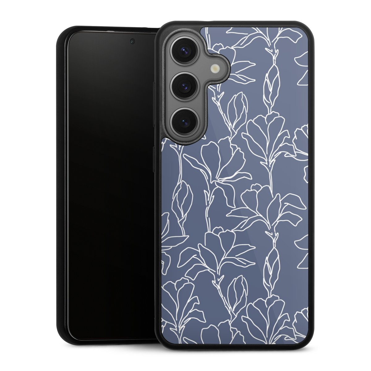 We print your design on the back of the glass inlay and then connect it firmly to the silicone case ,so that nothing sticks out and everything looks like it was cast from one piece. In addition, the sturdy glass element is protected from scratches by an additional coating and ensures a slight reflection on the shiny print image.