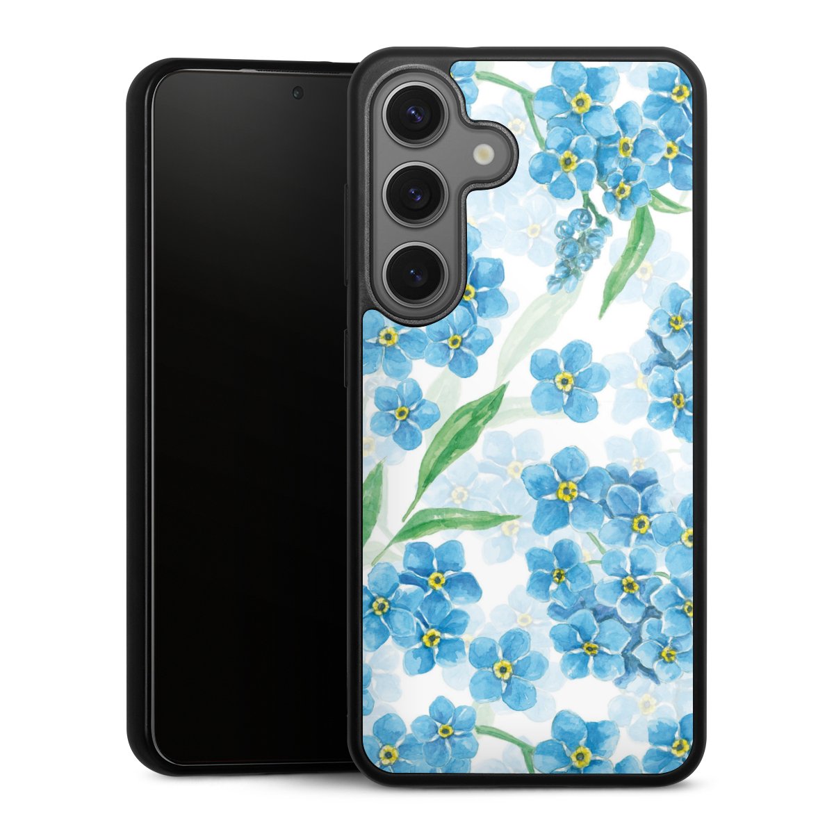 We print your design on the back of the glass inlay and then connect it firmly to the silicone case ,so that nothing sticks out and everything looks like it was cast from one piece. In addition, the sturdy glass element is protected from scratches by an additional coating and ensures a slight reflection on the shiny print image.