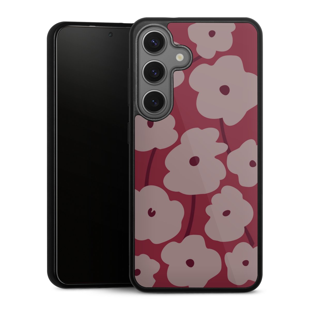 We print your design on the back of the glass inlay and then connect it firmly to the silicone case ,so that nothing sticks out and everything looks like it was cast from one piece. In addition, the sturdy glass element is protected from scratches by an additional coating and ensures a slight reflection on the shiny print image.