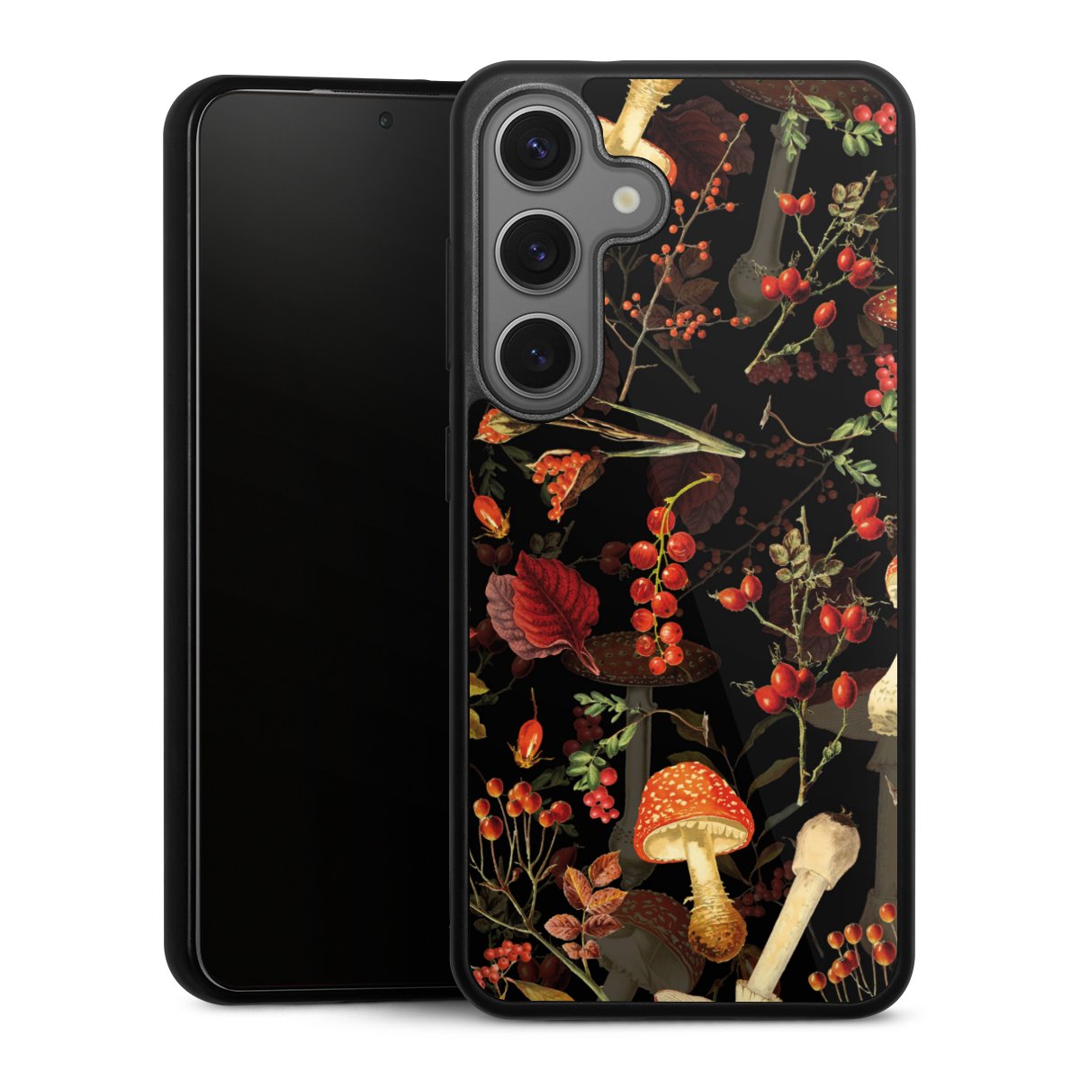 We print your design on the back of the glass inlay and then connect it firmly to the silicone case ,so that nothing sticks out and everything looks like it was cast from one piece. In addition, the sturdy glass element is protected from scratches by an additional coating and ensures a slight reflection on the shiny print image.