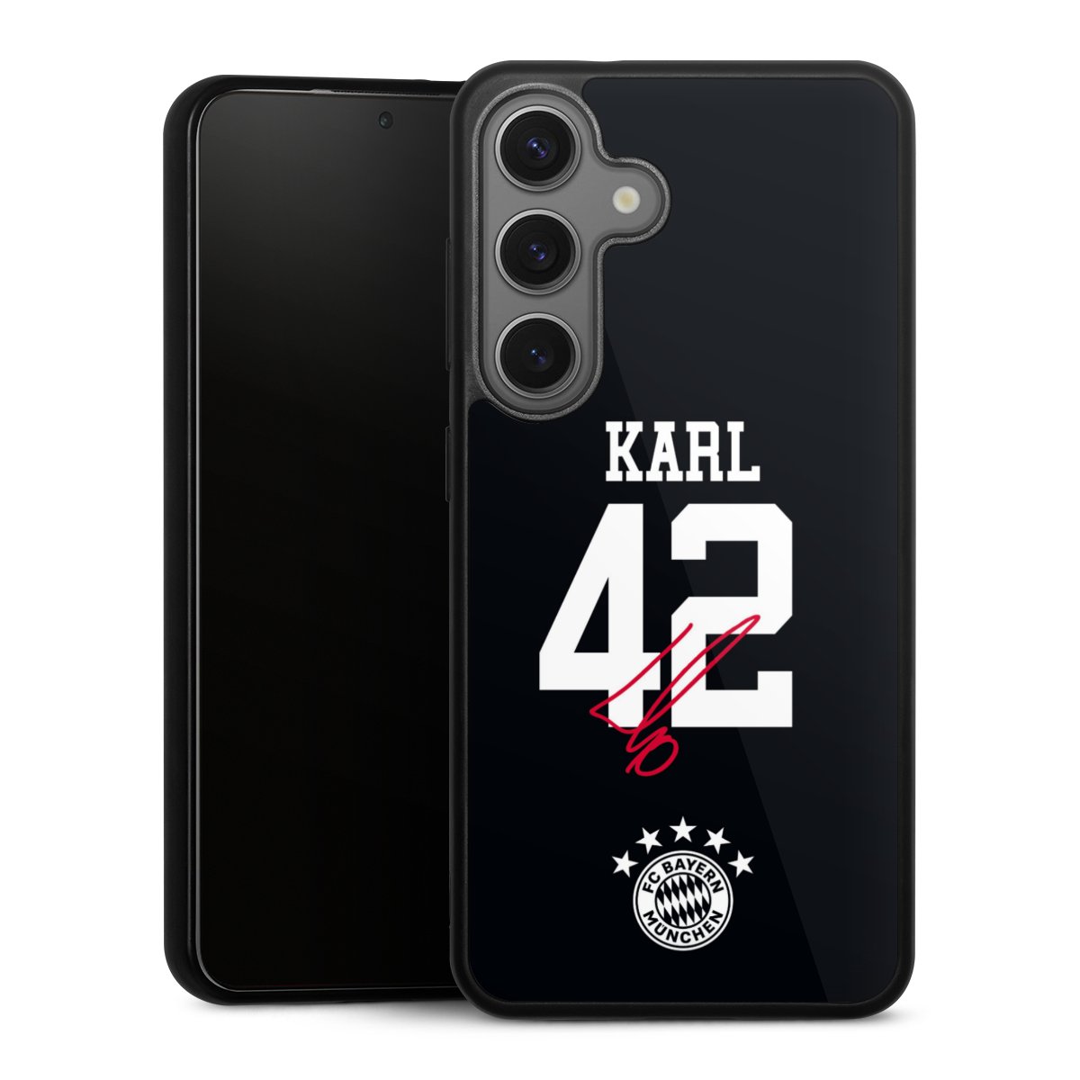 We print your design on the back of the glass inlay and then connect it firmly to the silicone case ,so that nothing sticks out and everything looks like it was cast from one piece. In addition, the sturdy glass element is protected from scratches by an additional coating and ensures a slight reflection on the shiny print image.