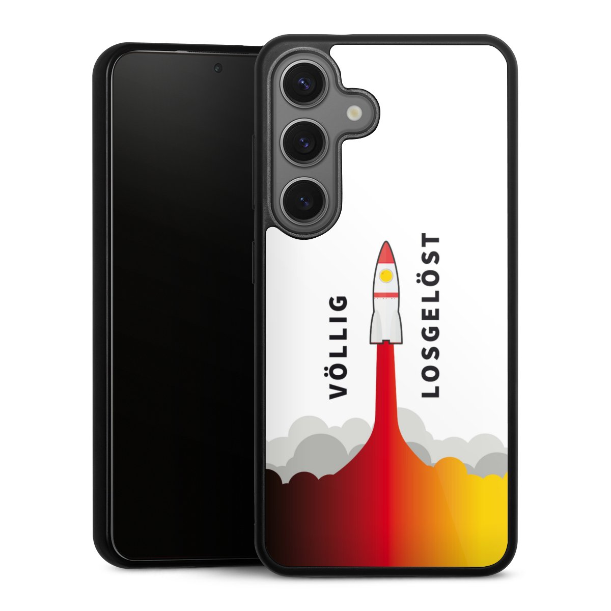 We print your design on the back of the glass inlay and then connect it firmly to the silicone case ,so that nothing sticks out and everything looks like it was cast from one piece. In addition, the sturdy glass element is protected from scratches by an additional coating and ensures a slight reflection on the shiny print image.