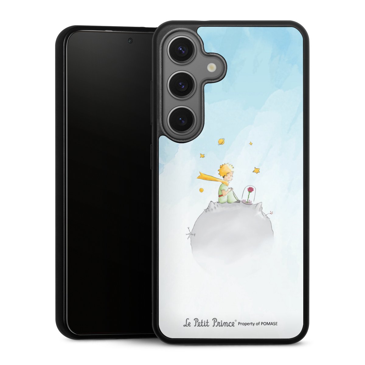 We print your design on the back of the glass inlay and then connect it firmly to the silicone case ,so that nothing sticks out and everything looks like it was cast from one piece. In addition, the sturdy glass element is protected from scratches by an additional coating and ensures a slight reflection on the shiny print image.