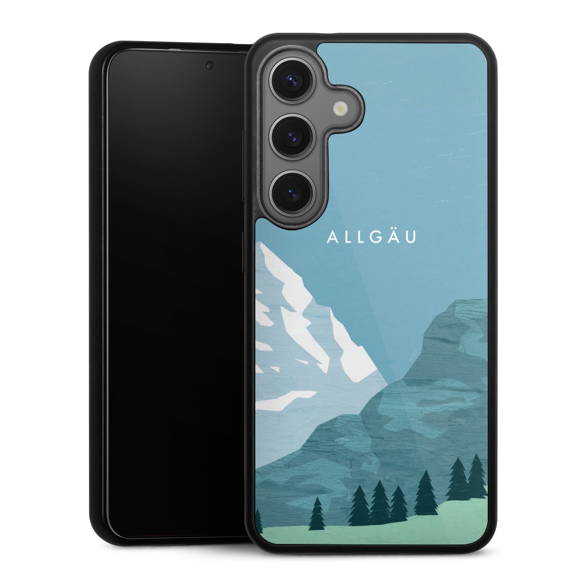 We print your design on the back of the glass inlay and then connect it firmly to the silicone case ,so that nothing sticks out and everything looks like it was cast from one piece. In addition, the sturdy glass element is protected from scratches by an additional coating and ensures a slight reflection on the shiny print image.