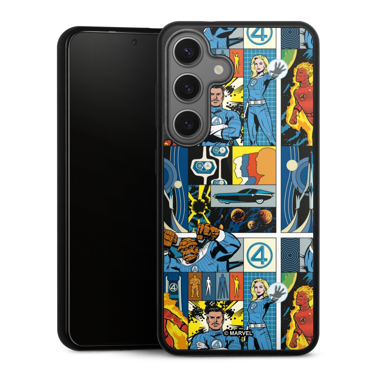We print your design on the back of the glass inlay and then connect it firmly to the silicone case ,so that nothing sticks out and everything looks like it was cast from one piece. In addition, the sturdy glass element is protected from scratches by an additional coating and ensures a slight reflection on the shiny print image.