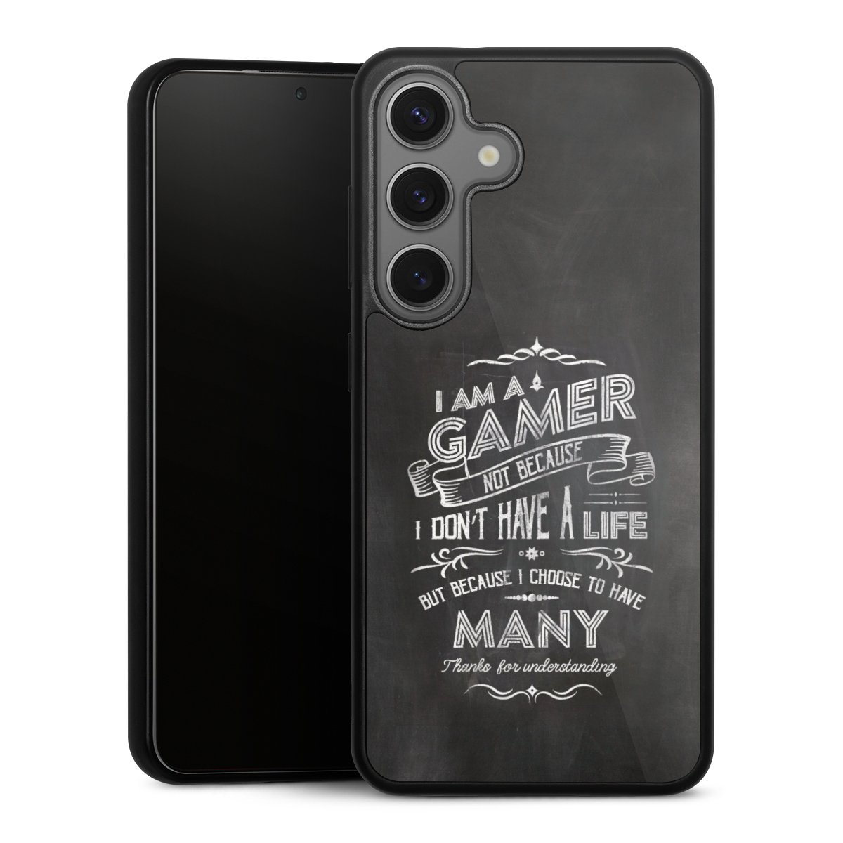We print your design on the back of the glass inlay and then connect it firmly to the silicone case ,so that nothing sticks out and everything looks like it was cast from one piece. In addition, the sturdy glass element is protected from scratches by an additional coating and ensures a slight reflection on the shiny print image.