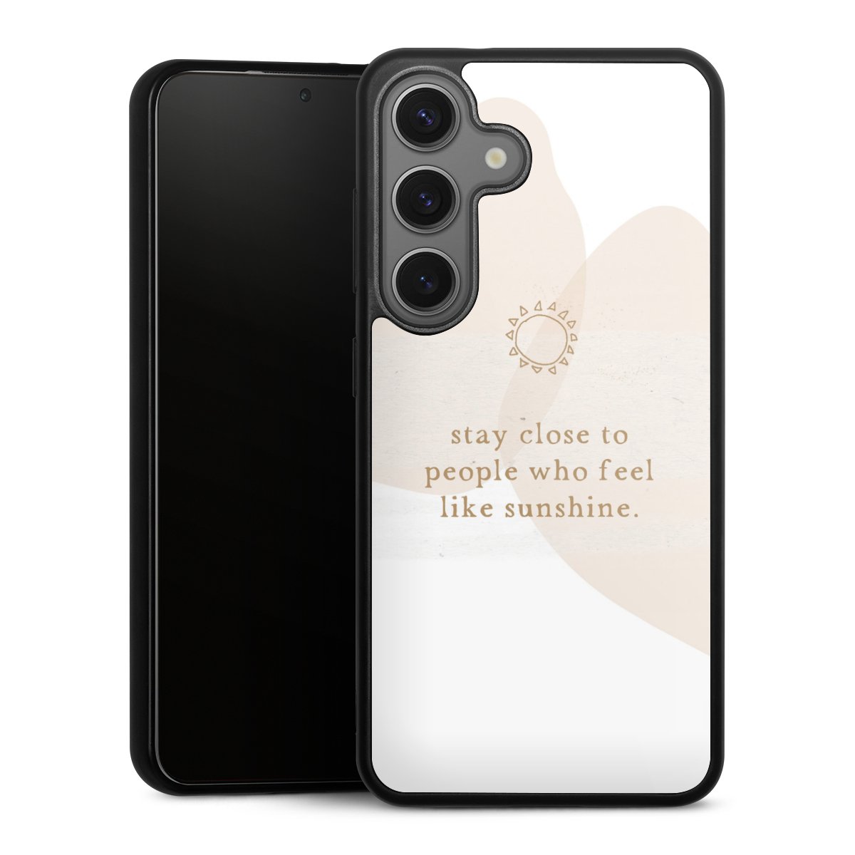 We print your design on the back of the glass inlay and then connect it firmly to the silicone case ,so that nothing sticks out and everything looks like it was cast from one piece. In addition, the sturdy glass element is protected from scratches by an additional coating and ensures a slight reflection on the shiny print image.