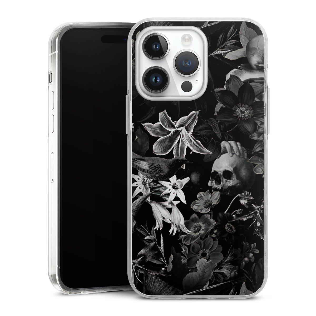 Skulls and Flowers on Black Background