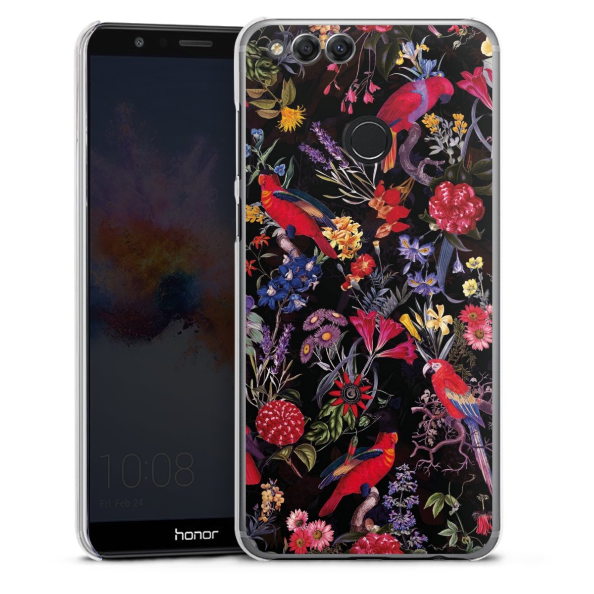 Dark Flowers and Parrots