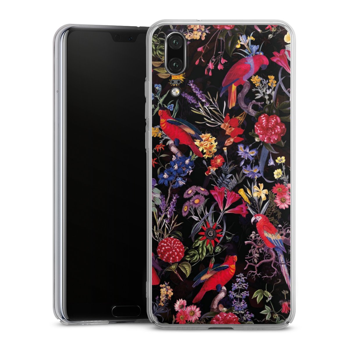 Dark Flowers and Parrots
