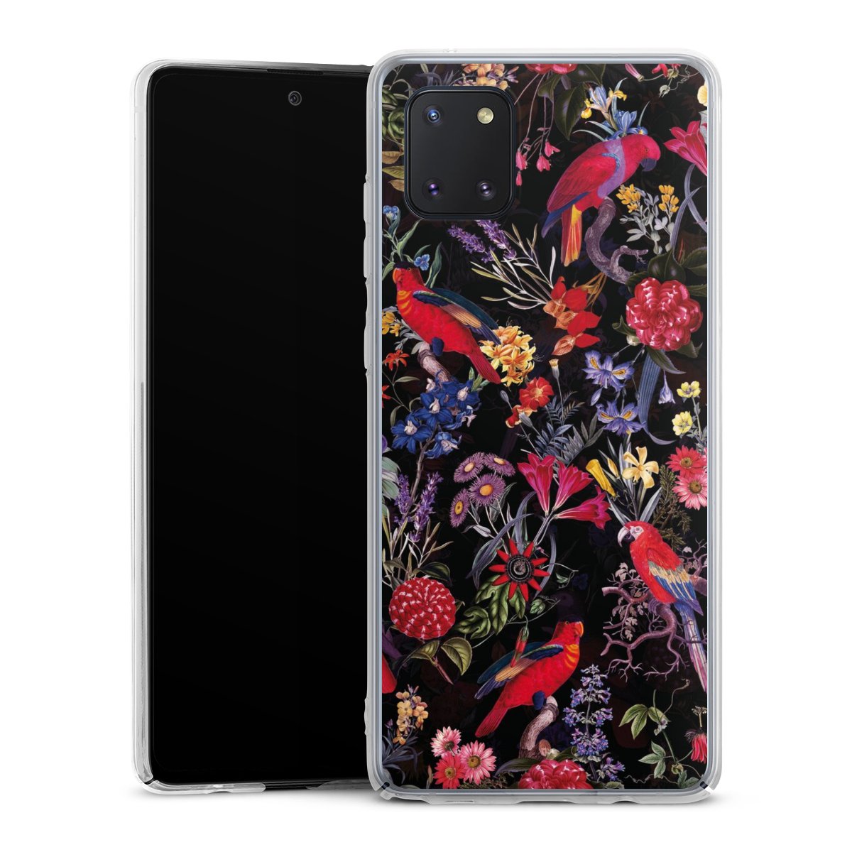 Dark Flowers and Parrots