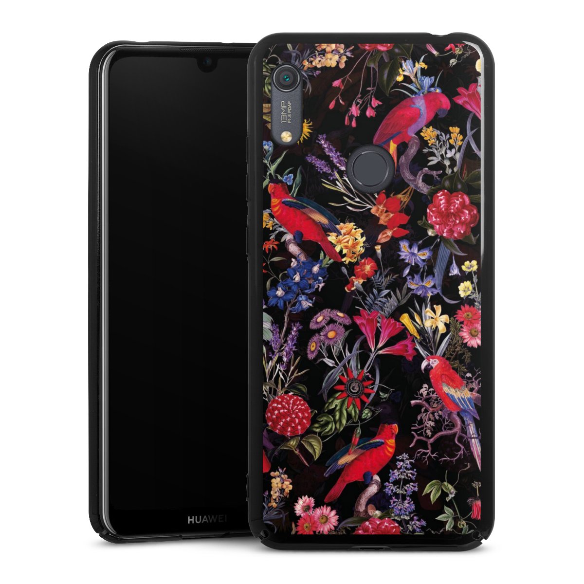 Dark Flowers and Parrots