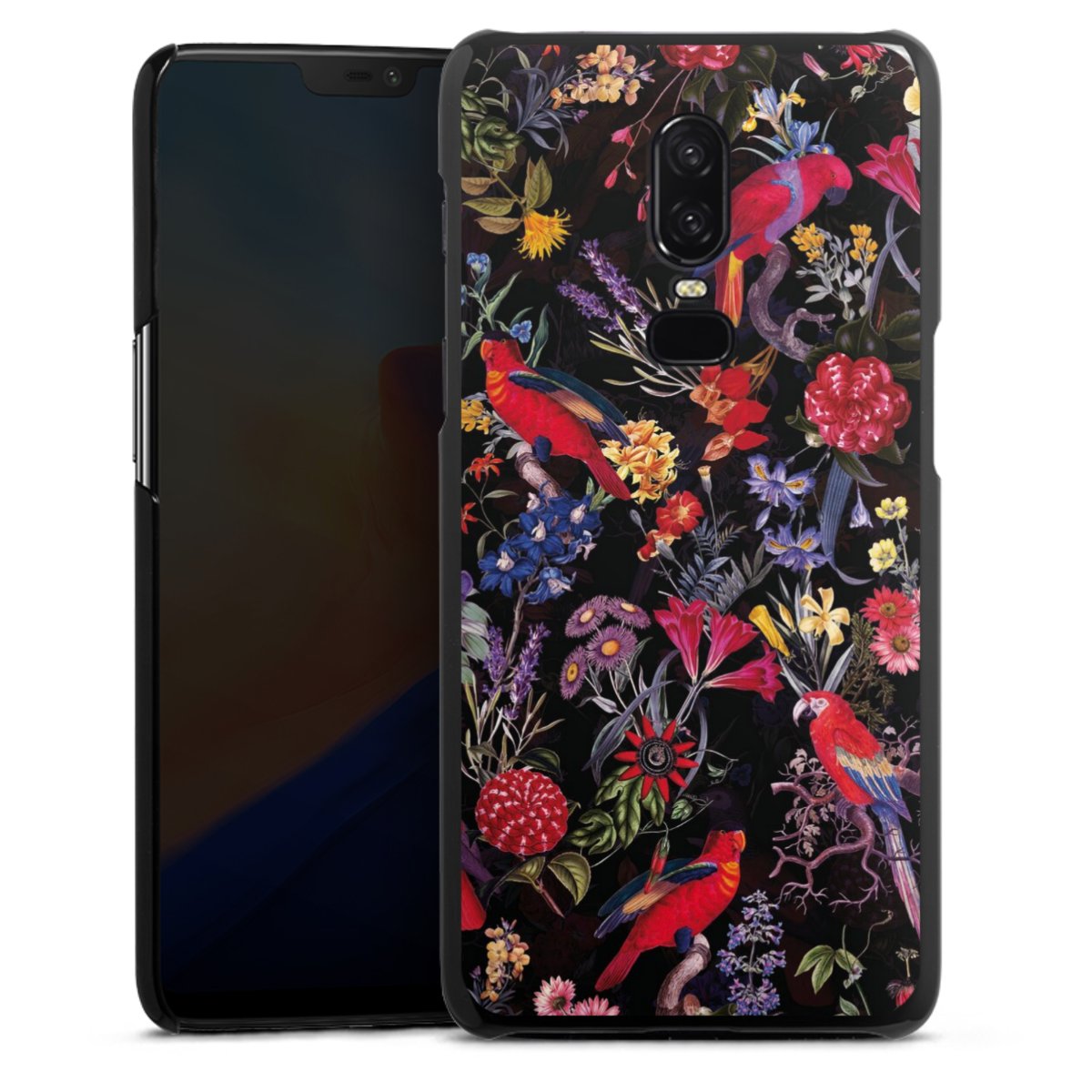 Dark Flowers and Parrots