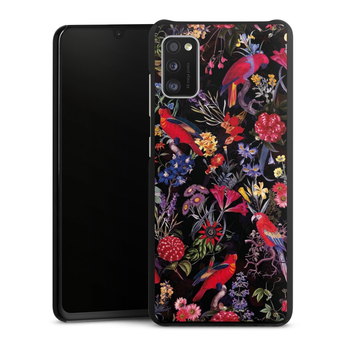 Dark Flowers and Parrots
