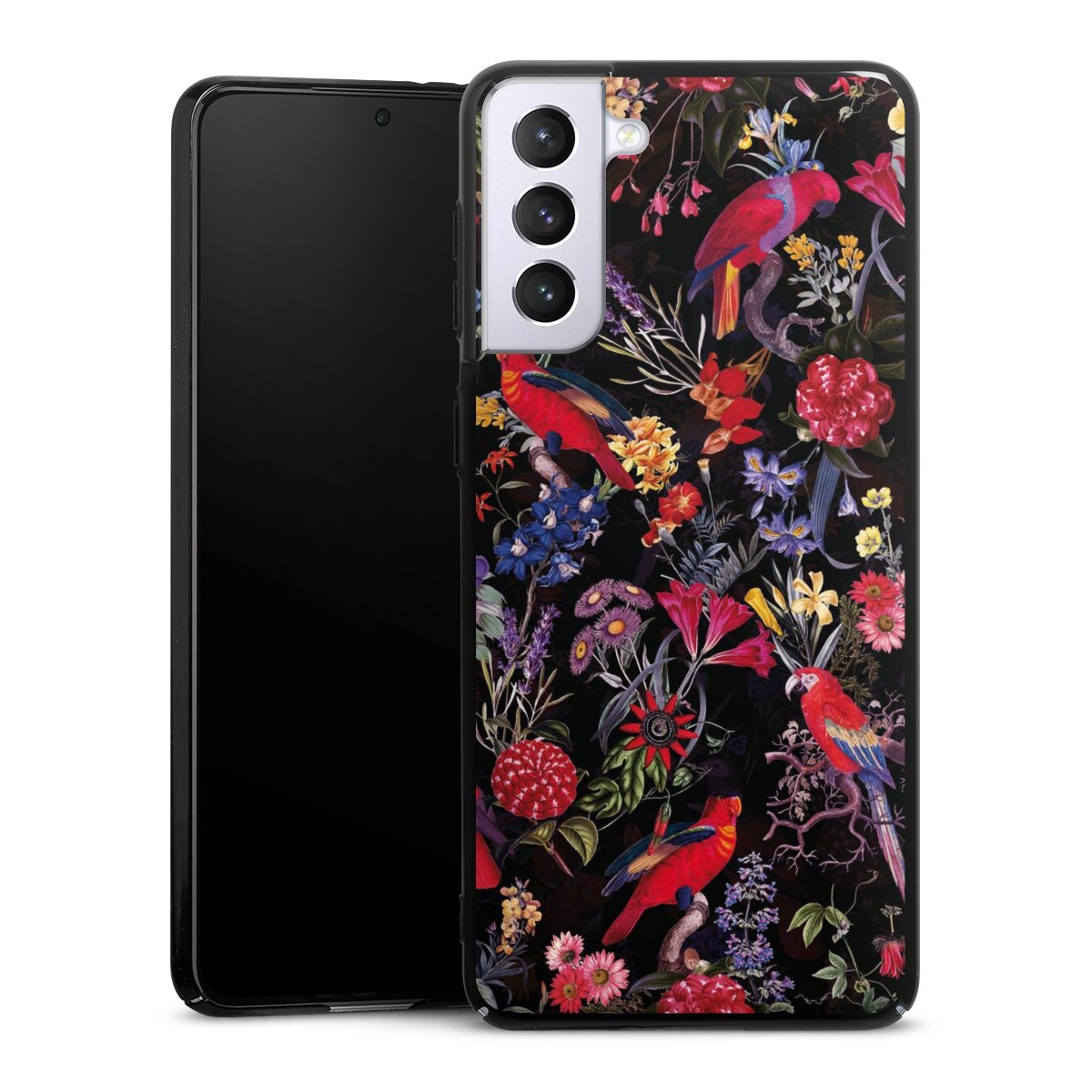 Dark Flowers and Parrots