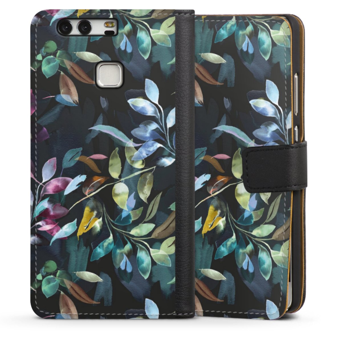 Watercolor Mystic Leaves Black