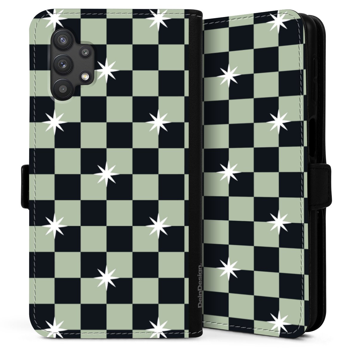 Checked Pattern Black Grey Stars