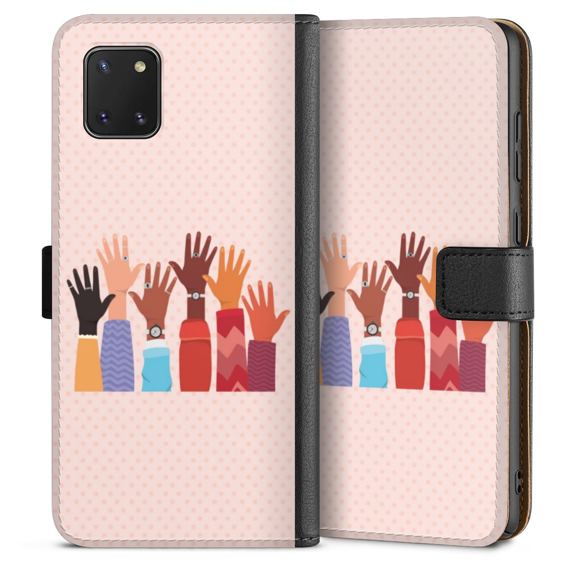 Product details The handy phone bag comes with a polycarbonate hard case on the inside, offering your smartphone secure protection while we are using a highquality, vegan Skai® leather imitate to form the flap and the outside of the case. You can open the flap sidewards and slots for money bills and business cars are included. The case closes with an magnetic flap.