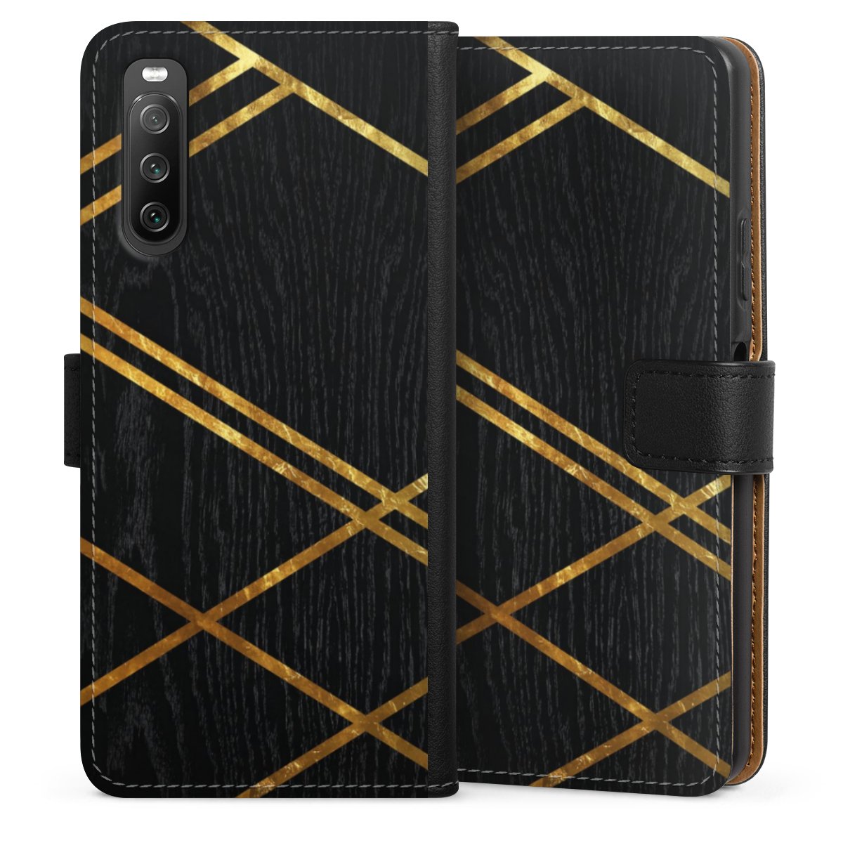 Black Geometric Pattern Golden Stripes