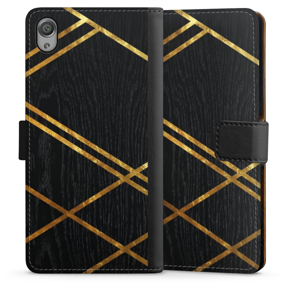 Black Geometric Pattern Golden Stripes