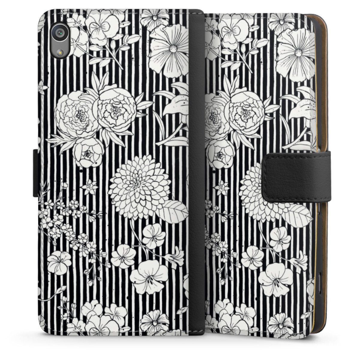 Flowers and Stripes Black and White