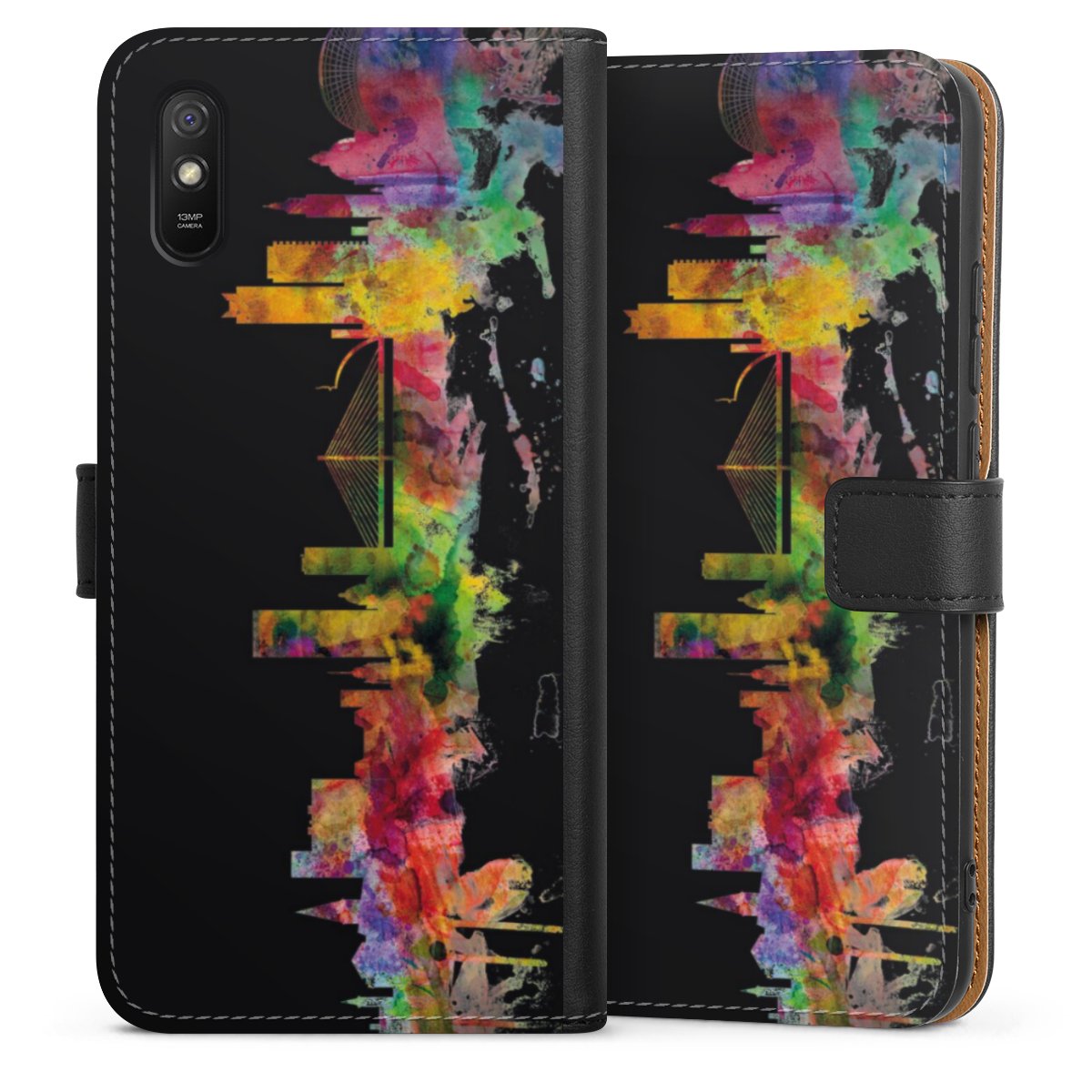 Product details The handy phone bag comes with a polycarbonate hard case on the inside, offering your smartphone secure protection while we are using a highquality, vegan Skai® leather imitate to form the flap and the outside of the case. You can open the flap sidewards and slots for money bills and business cars are included. The case closes with an magnetic flap.