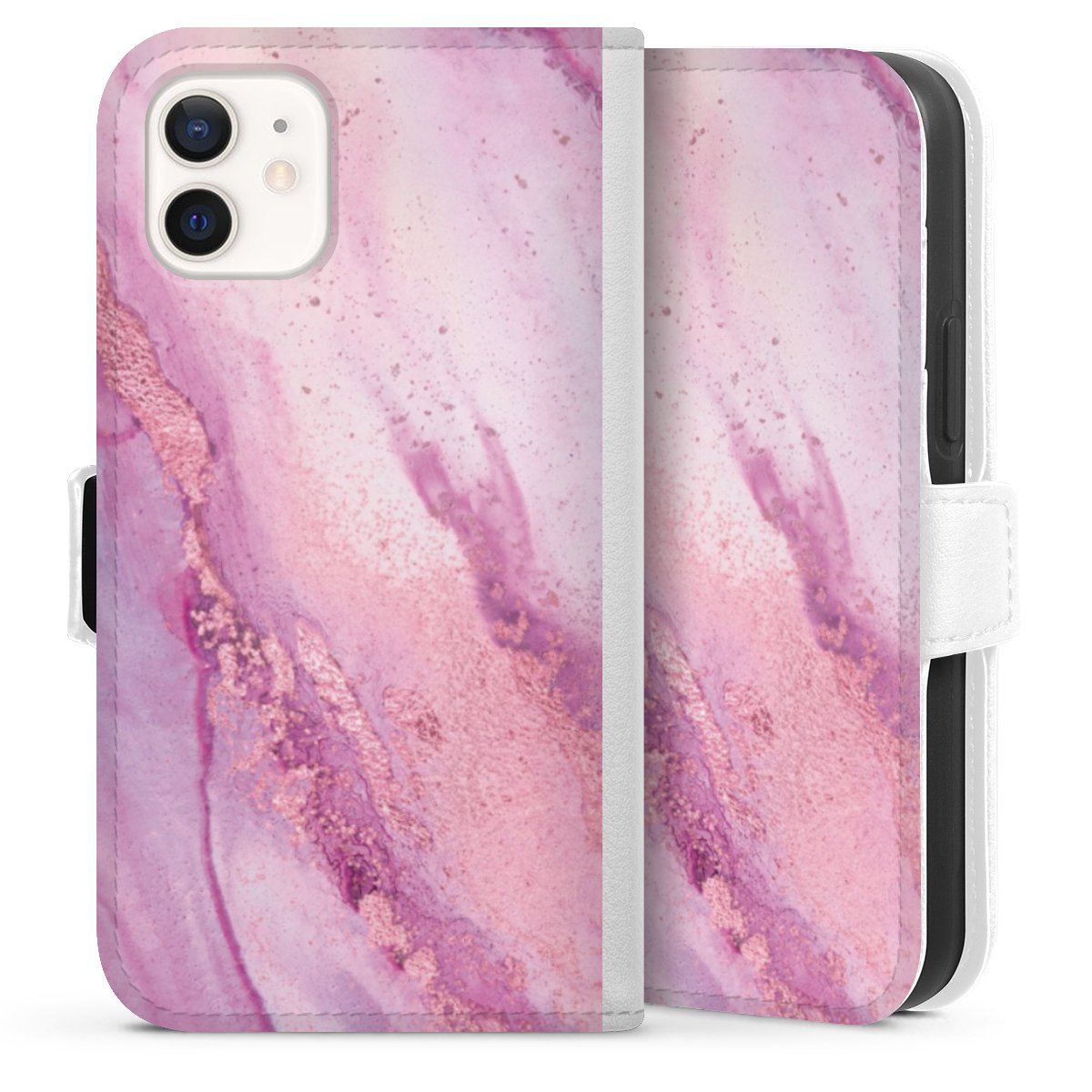 For our Sideflip Case we are using our advanced direct printing technology. The back and frontside are fully printabale, the inside of the phone bag is left unprinted. You can order the phone case without print, printed completely or also with a partial print.