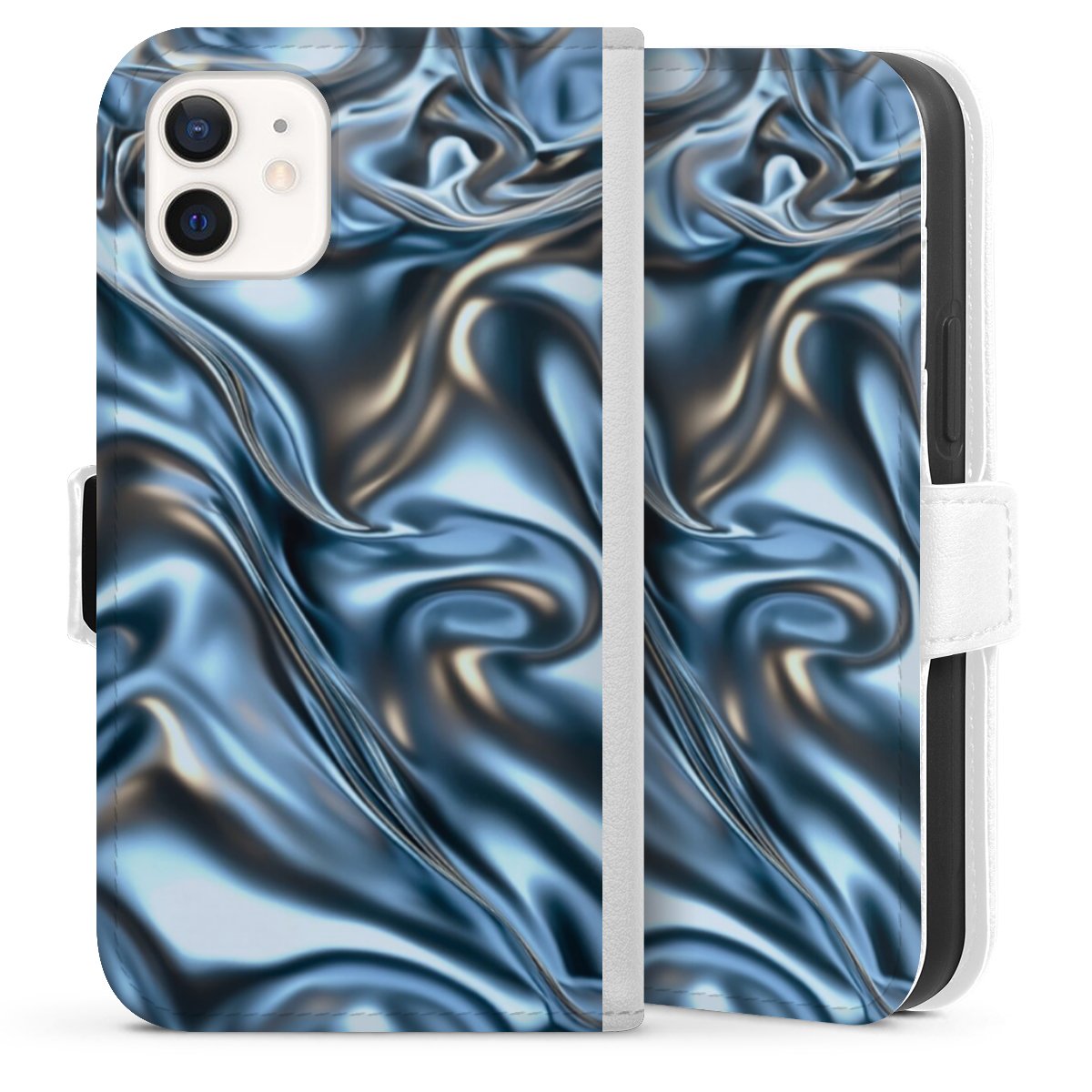 For our Sideflip Case we are using our advanced direct printing technology. The back and frontside are fully printabale, the inside of the phone bag is left unprinted. You can order the phone case without print, printed completely or also with a partial print.