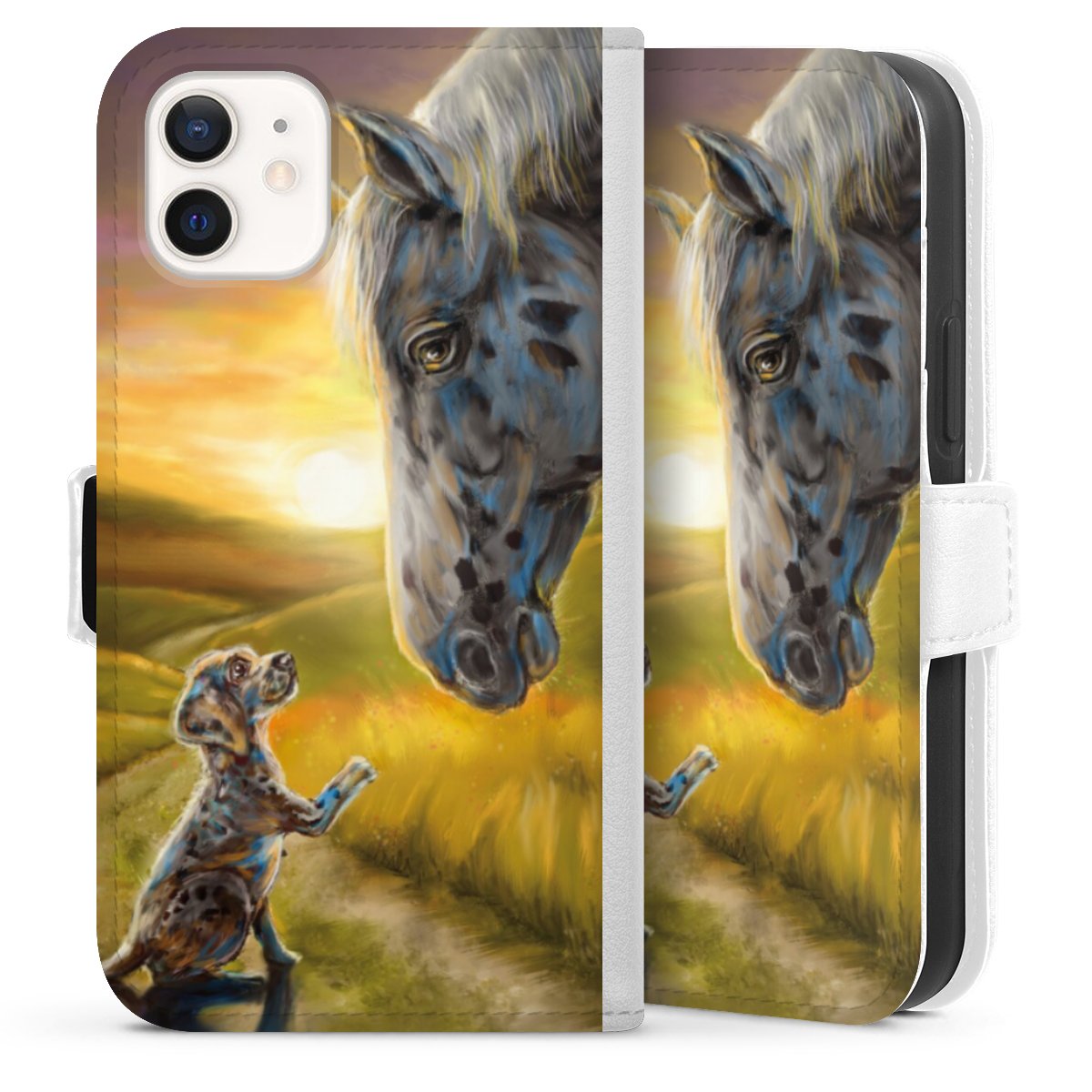 For our Sideflip Case we are using our advanced direct printing technology. The back and frontside are fully printabale, the inside of the phone bag is left unprinted. You can order the phone case without print, printed completely or also with a partial print.
