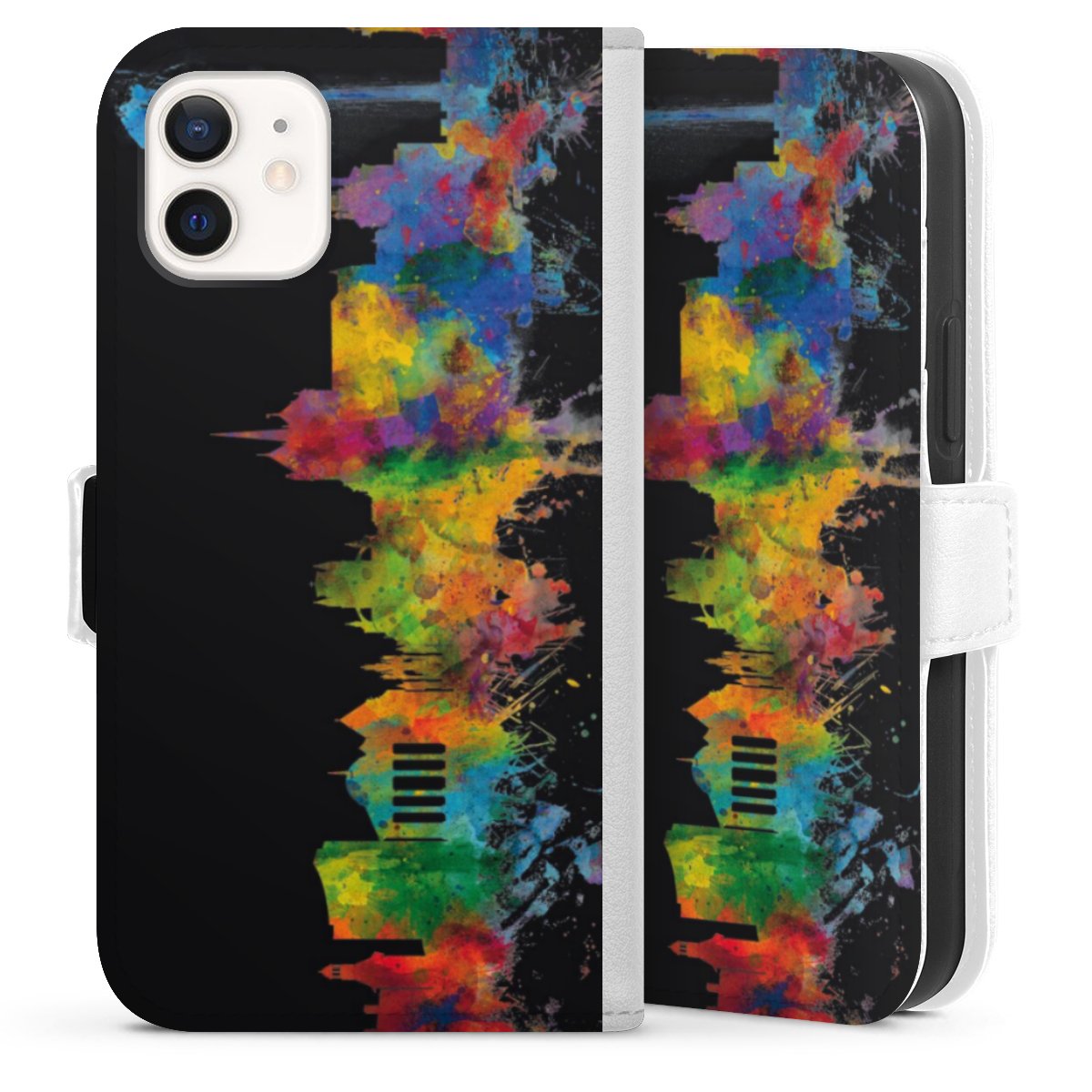 For our Sideflip Case we are using our advanced direct printing technology. The back and frontside are fully printabale, the inside of the phone bag is left unprinted. You can order the phone case without print, printed completely or also with a partial print.
