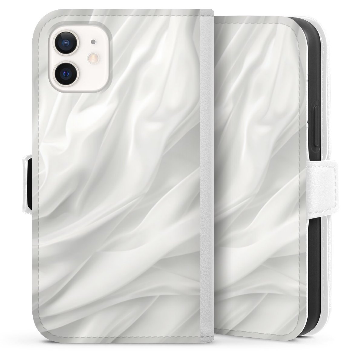 For our Sideflip Case we are using our advanced direct printing technology. The back and frontside are fully printabale, the inside of the phone bag is left unprinted. You can order the phone case without print, printed completely or also with a partial print.