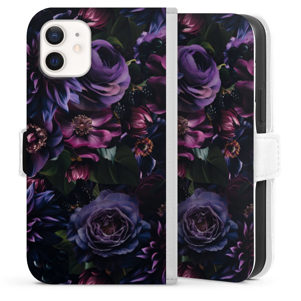 For our Sideflip Case we are using our advanced direct printing technology. The back and frontside are fully printabale, the inside of the phone bag is left unprinted. You can order the phone case without print, printed completely or also with a partial print.