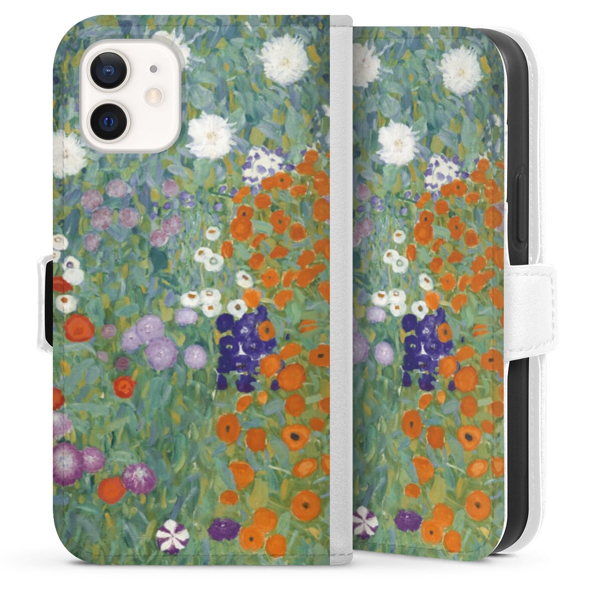 For our Sideflip Case we are using our advanced direct printing technology. The back and frontside are fully printabale, the inside of the phone bag is left unprinted. You can order the phone case without print, printed completely or also with a partial print.