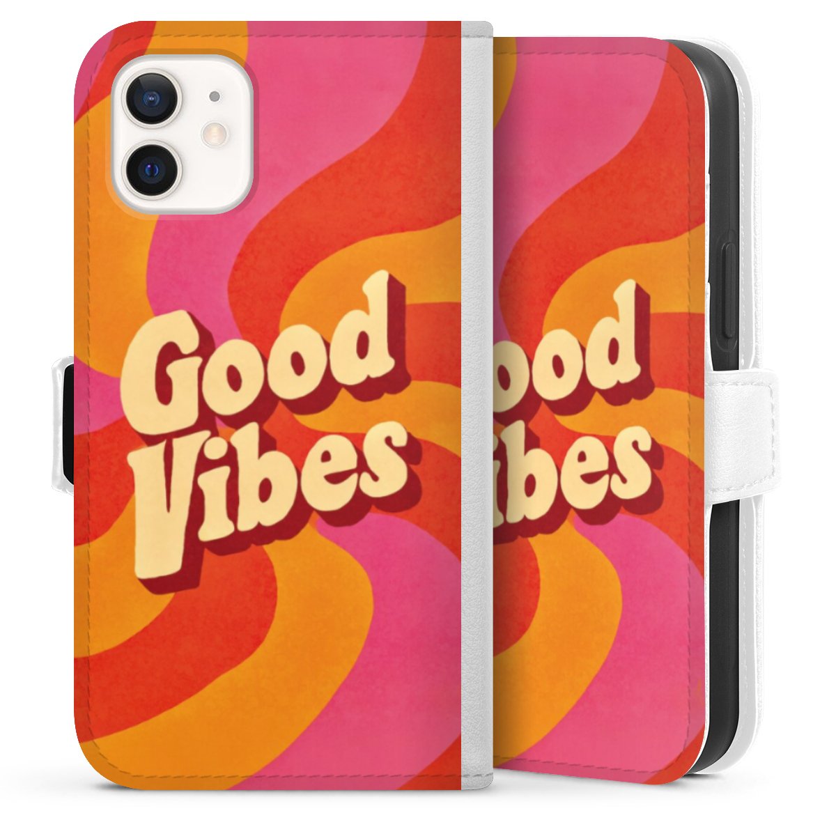 For our Sideflip Case we are using our advanced direct printing technology. The back and frontside are fully printabale, the inside of the phone bag is left unprinted. You can order the phone case without print, printed completely or also with a partial print.