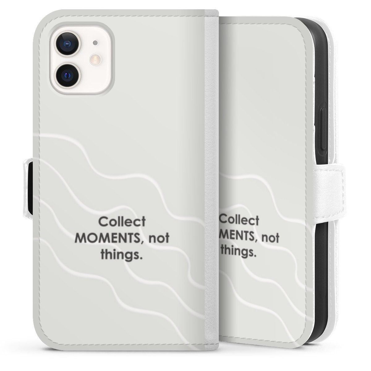 For our Sideflip Case we are using our advanced direct printing technology. The back and frontside are fully printabale, the inside of the phone bag is left unprinted. You can order the phone case without print, printed completely or also with a partial print.