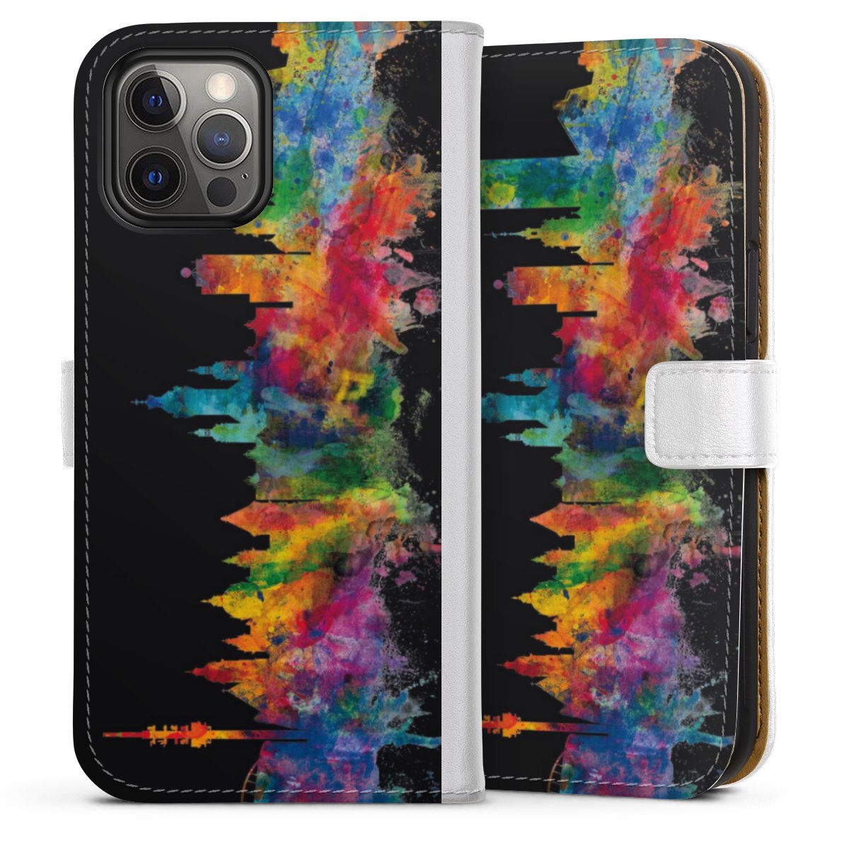 For our Sideflip Case we are using our advanced direct printing technology. The back and frontside are fully printabale, the inside of the phone bag is left unprinted. You can order the phone case without print, printed completely or also with a partial print.
