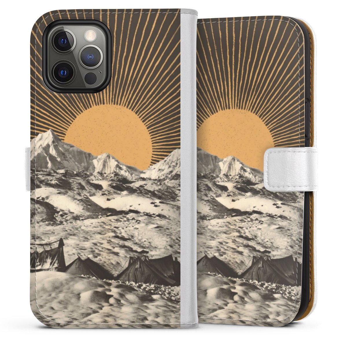 For our Sideflip Case we are using our advanced direct printing technology. The back and frontside are fully printabale, the inside of the phone bag is left unprinted. You can order the phone case without print, printed completely or also with a partial print.