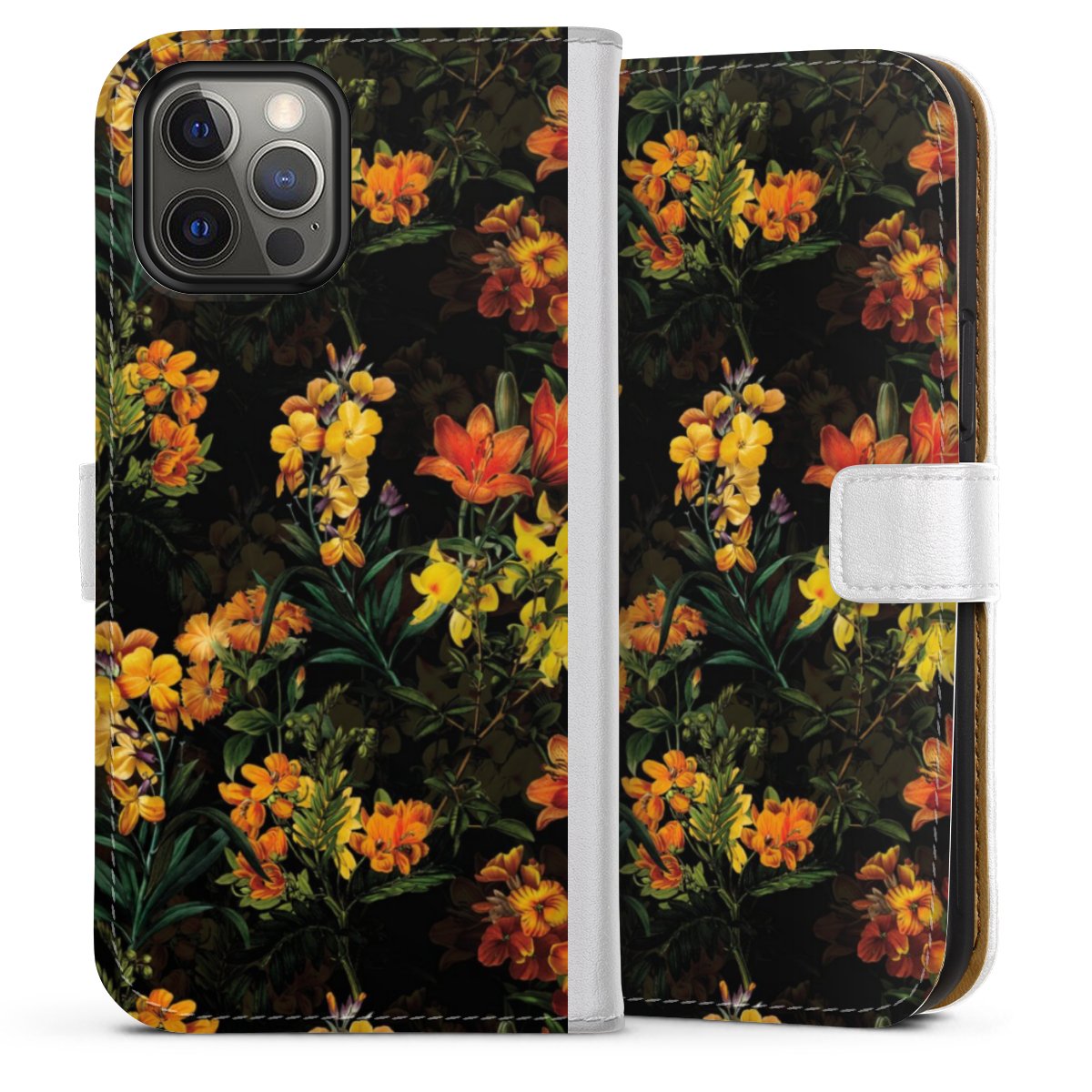 For our Sideflip Case we are using our advanced direct printing technology. The back and frontside are fully printabale, the inside of the phone bag is left unprinted. You can order the phone case without print, printed completely or also with a partial print.