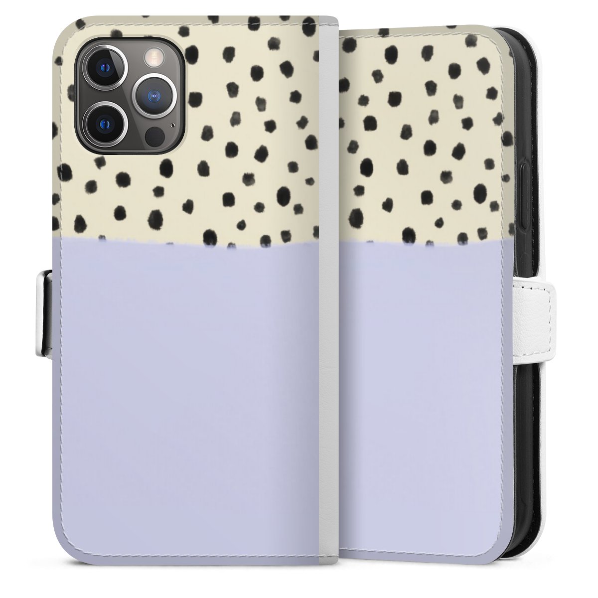 For our Sideflip Case we are using our advanced direct printing technology. The back and frontside are fully printabale, the inside of the phone bag is left unprinted. You can order the phone case without print, printed completely or also with a partial print.