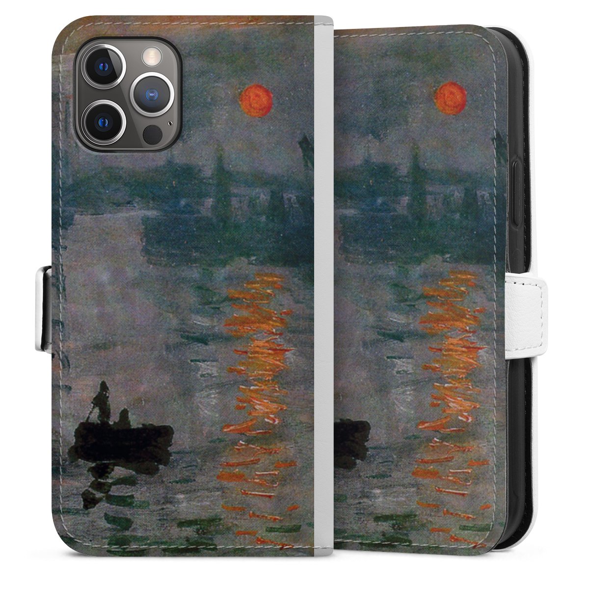 For our Sideflip Case we are using our advanced direct printing technology. The back and frontside are fully printabale, the inside of the phone bag is left unprinted. You can order the phone case without print, printed completely or also with a partial print.