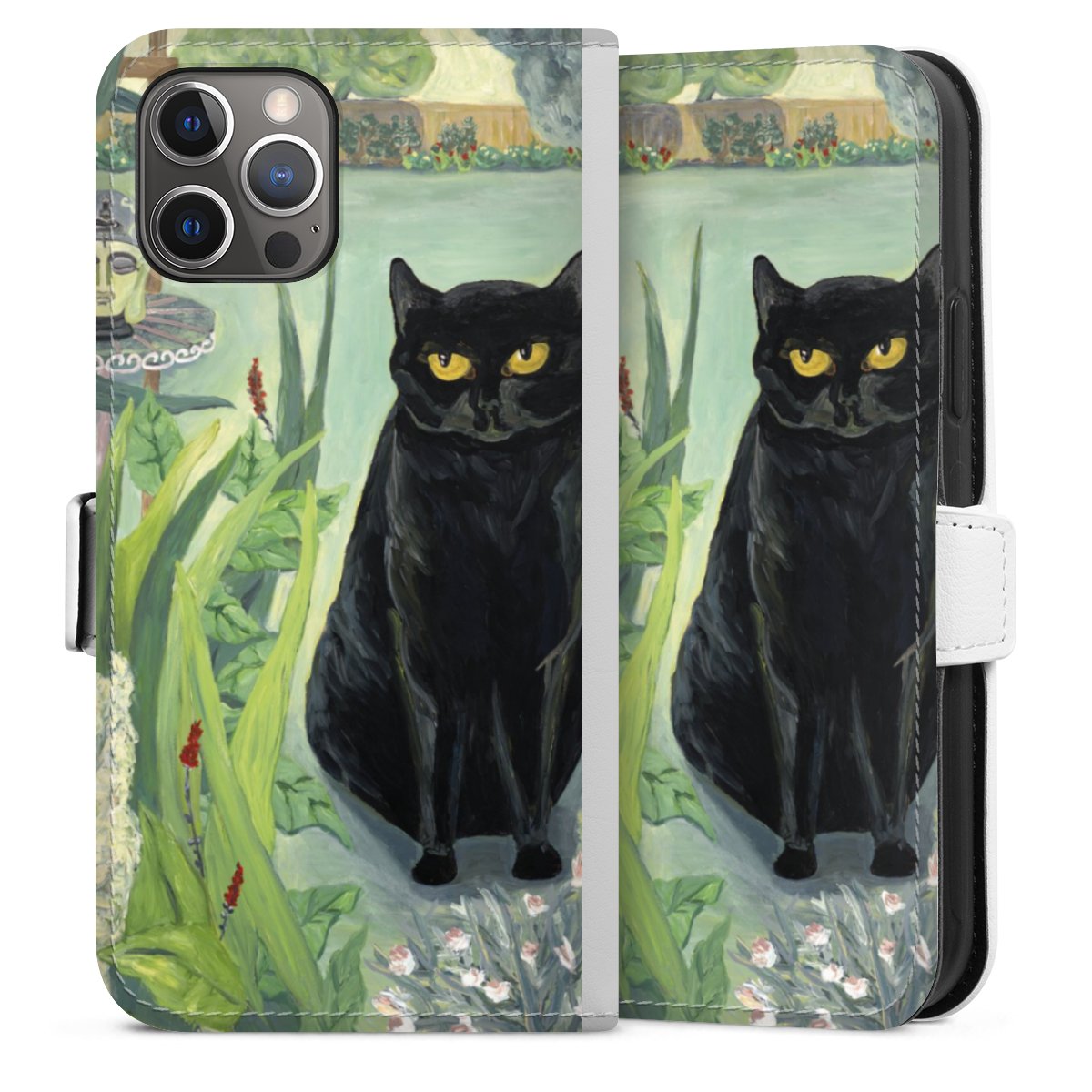 For our Sideflip Case we are using our advanced direct printing technology. The back and frontside are fully printabale, the inside of the phone bag is left unprinted. You can order the phone case without print, printed completely or also with a partial print.