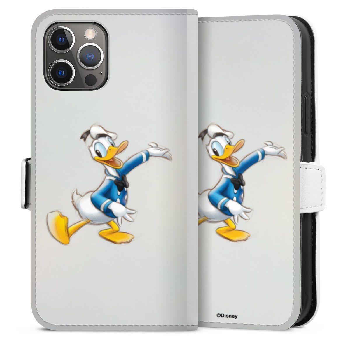For our Sideflip Case we are using our advanced direct printing technology. The back and frontside are fully printabale, the inside of the phone bag is left unprinted. You can order the phone case without print, printed completely or also with a partial print.