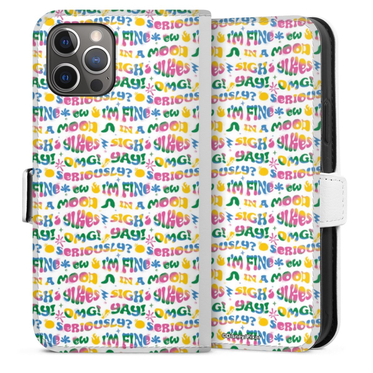 For our Sideflip Case we are using our advanced direct printing technology. The back and frontside are fully printabale, the inside of the phone bag is left unprinted. You can order the phone case without print, printed completely or also with a partial print.